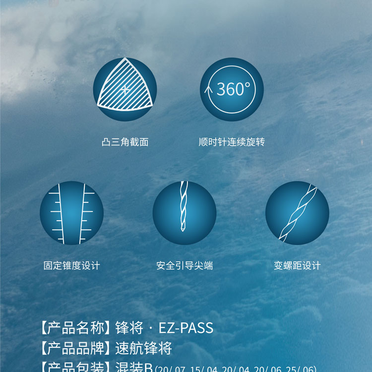 2) 凸三角截面、变螺距设计,高效切削、顺畅排屑