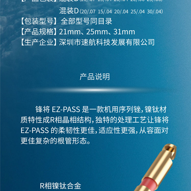J9锋将EZ-PASS是一款序列预备的连续旋转机用根管锉,提供轻松、简单的操作体验。